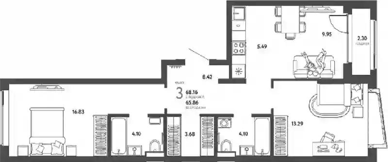 15 790 000 ₽3-к.квартира, 65.94 м², 7 эт.