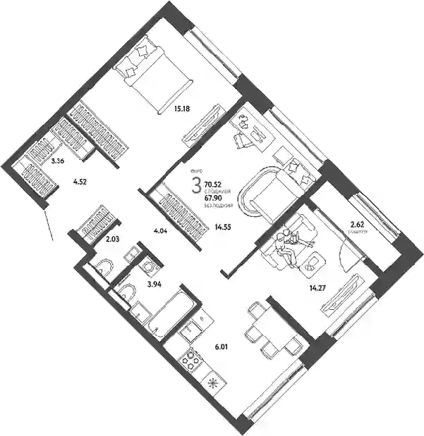 16 780 000 ₽3-к.квартира, 67.01 м², 18 эт.