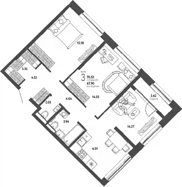 14 210 000 ₽3-к.квартира, 67.01 м², 19 эт.