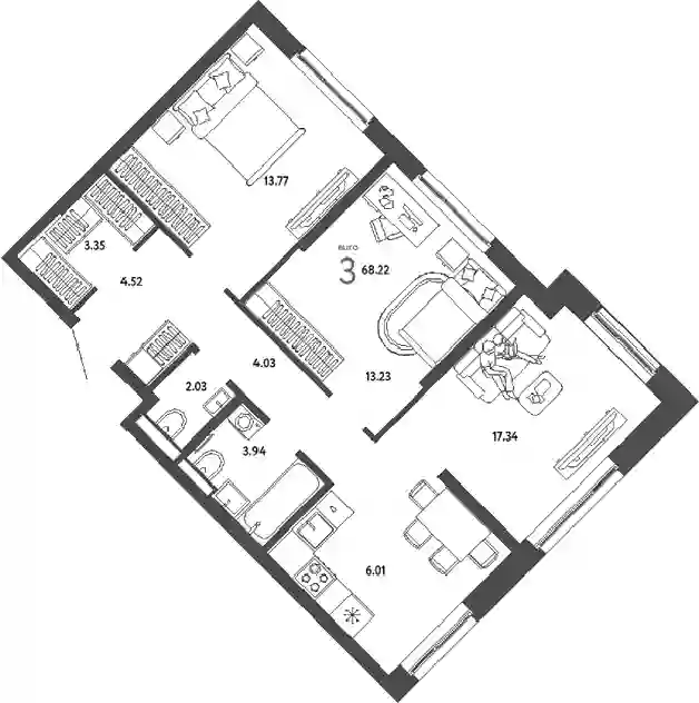17 770 000 ₽3-к.квартира, 66.88 м², 4 эт.