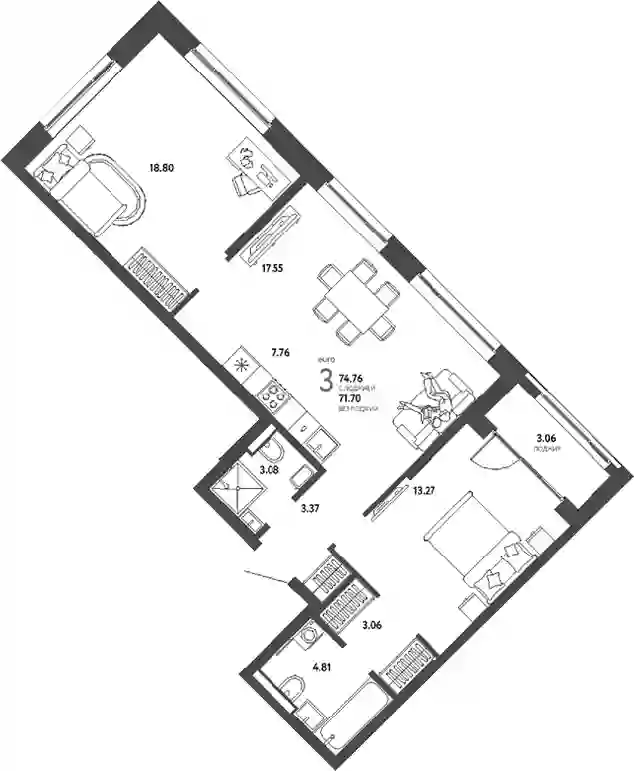 19 755 000 ₽3-к.квартира, 78.82 м², 3 эт.