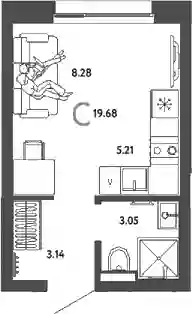 8 130 000 ₽Студия, 22.28 м², 17 эт.