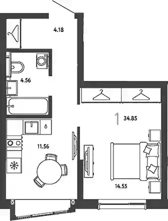 10 436 000 ₽1-к.квартира, 34.62 м², 3 эт.