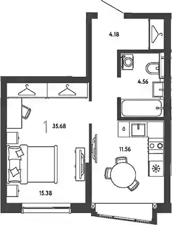 11 670 000 ₽1-к.квартира, 35.68 м², 15 эт.