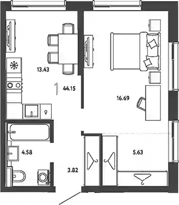 1-к.квартира, 44.15 м², 14 эт. в ЖК Страна.Парковая Корпус Васнецов 2