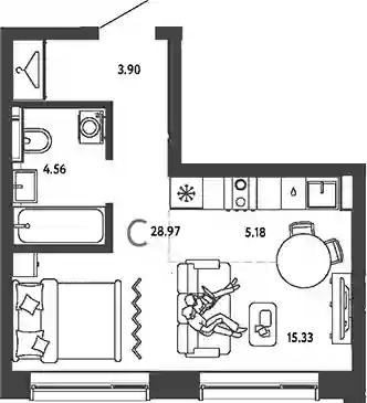 Студия, 28.97 м², 19 эт. в ЖК Страна.Парковая Корпус Васнецов