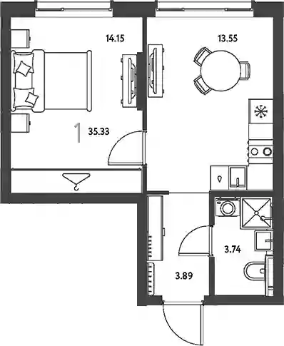 1-к.квартира, 35.33 м², 12 эт. в ЖК Страна.Парковая Корпус Васнецов 3