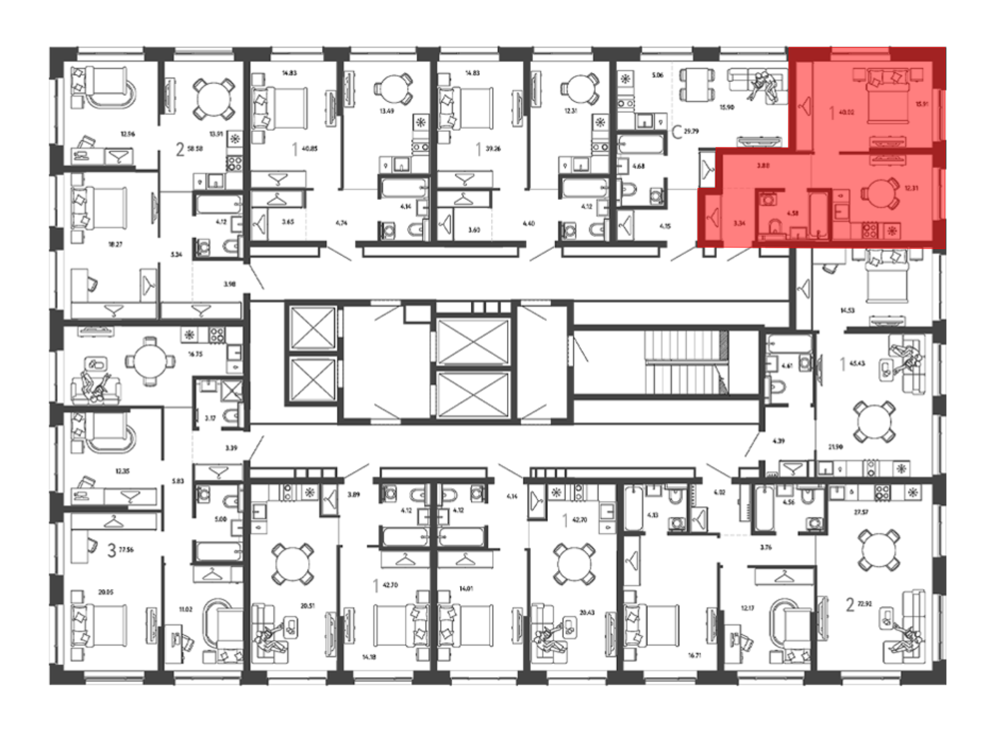 1-к.квартира, 40.02 м², 17 эт. в ЖК Страна.Парковая Корпус Васнецов 3