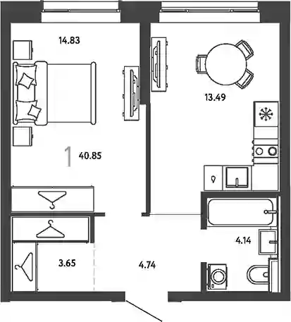 1-к.квартира, 40.85 м², 19 эт. в ЖК Страна.Парковая Корпус Васнецов 3