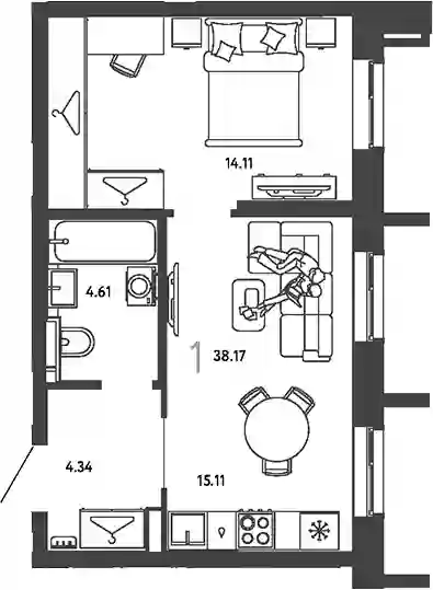 11 286 160 ₽1-к.квартира, 38.48 м², 4 эт.