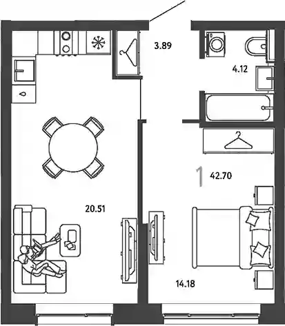 2-к.квартира, 42.7 м², 18 эт. в ЖК Страна.Парковая Корпус Васнецов 3