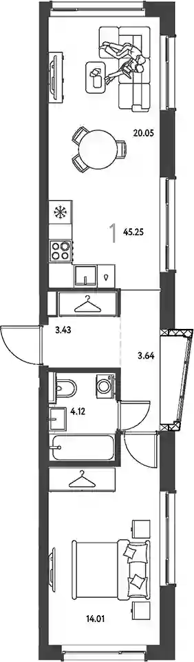 8 780 000 ₽1-к.квартира, 44.15 м², 13 эт.