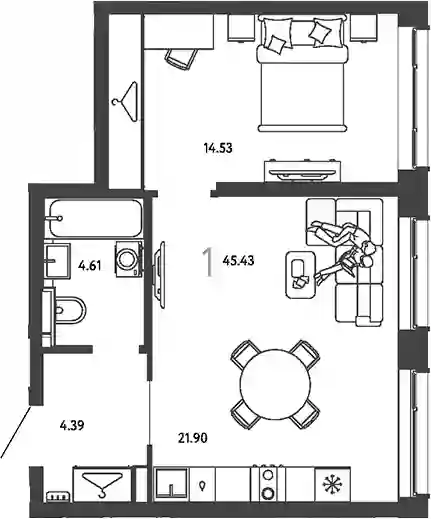 8 880 000 ₽1-к.квартира, 44.15 м², 15 эт.