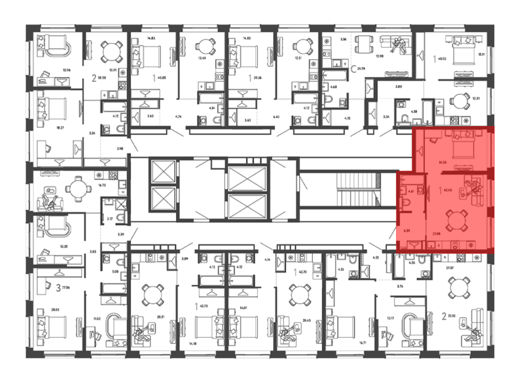 11 020 000 ₽2-к.квартира, 42.3 м², 12 эт.