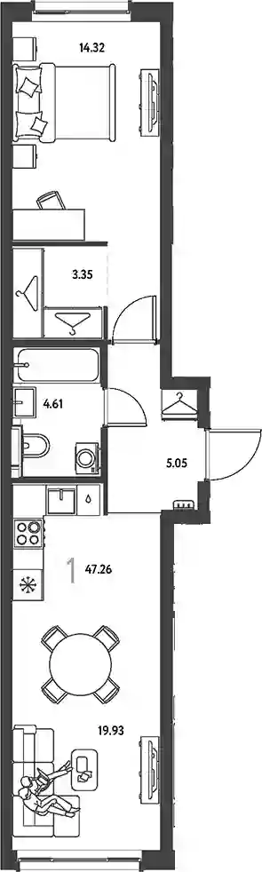 8 780 000 ₽1-к.квартира, 44.15 м², 13 эт.