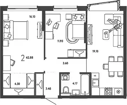 В проекте предложен широкий выбор планировочных решений от студий до 5-комнатных квартир европейского формата. К покупке доступны квартиры с мастер-спальнями, отдельными гардеробными, лоджиями, французскими балконами и террасами. Высота потолков в квартирах достигает 3 метров. Квартиры сдаются с улучшенной черновой отделкой. Дополнительно можно выбрать дизайнерскую отделку из 5 стилей, а для ванных комнат доступно 4 цветовых решения. Квартиры оснащены системой «умный дом» с возможностью установки различных интеллектуальных устройств.