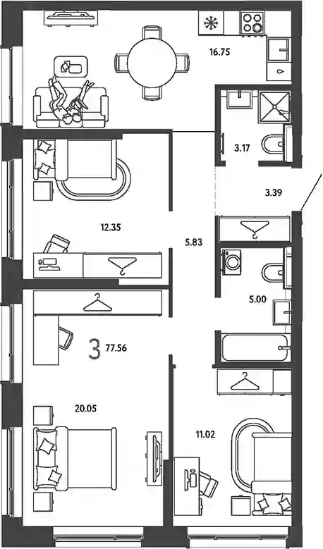 19 755 000 ₽3-к.квартира, 78.82 м², 3 эт.