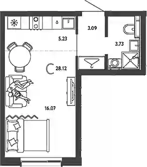 Студия, 28.12 м², 12 эт. в ЖК Страна.Парковая Корпус Васнецов 3