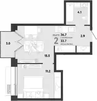 2-к.квартира, 33.7 м², 8 эт. в ЖК Страна.Заречная Корпус Дом Стремление