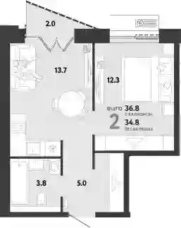 2-к.квартира, 34.8 м², 8 эт. в ЖК Страна.Заречная Корпус Дом Стремление