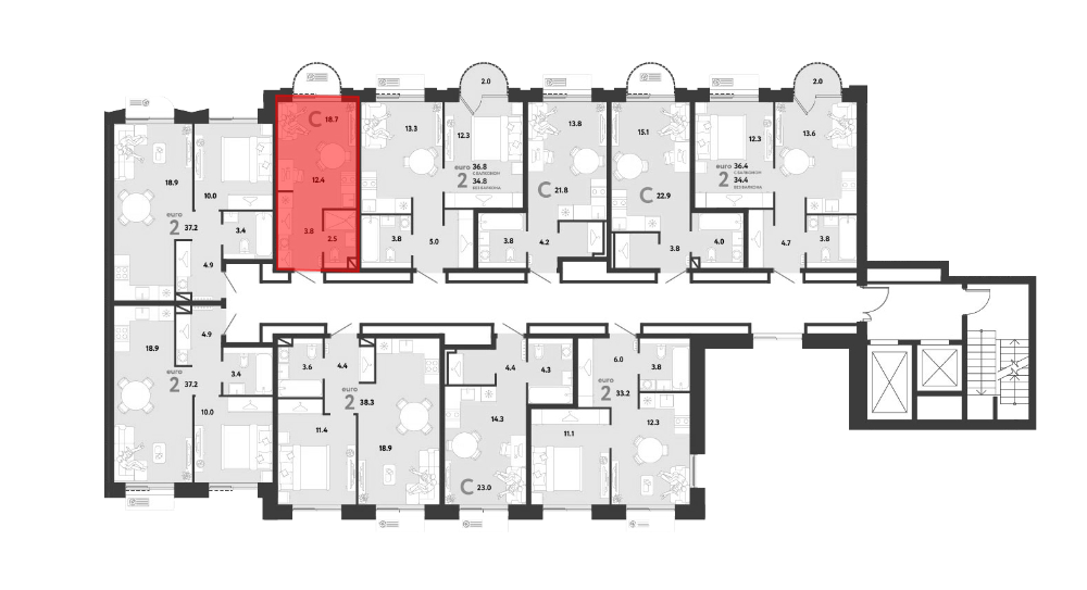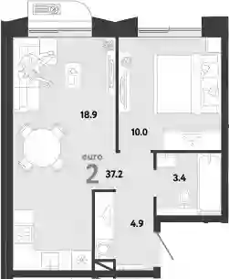 2-к.квартира, 37.2 м², 9 эт. в ЖК Страна.Заречная Корпус Дом Стремление