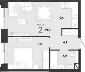 39.3 м2