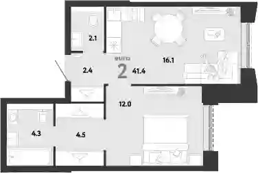 19 111 104 ₽2-к.квартира, 44.09 м², 16 эт.