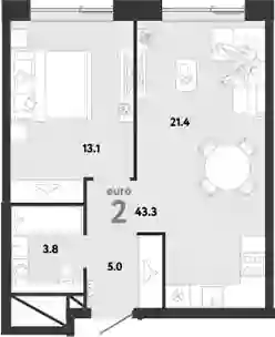 2-к.квартира, 43.3 м², 25 эт. в ЖК Страна.Заречная Корпус Дом Стремление
