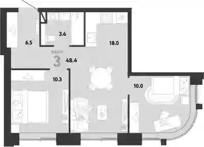 3-к.квартира, 48.4 м², 17 эт. в ЖК Страна.Заречная Корпус Дом Стремление