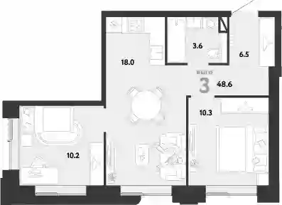 3-к.квартира, 48.6 м², 12 эт. в ЖК Страна.Заречная Корпус Дом Стремление