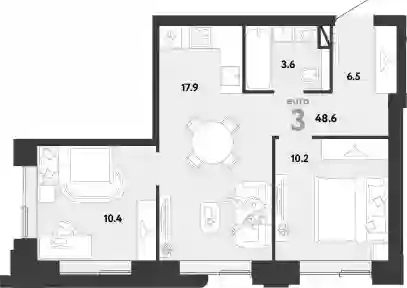 3-к.квартира, 48.6 м², 3 эт. в ЖК Страна.Заречная Корпус Дом Стремление