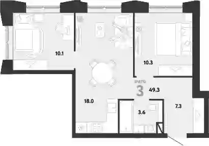 3-к.квартира, 49.3 м², 22 эт. в ЖК Страна.Заречная Корпус Дом Стремление