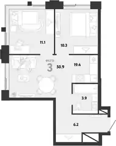 20 756 060 ₽3-к.квартира, 50.62 м², 11 эт.