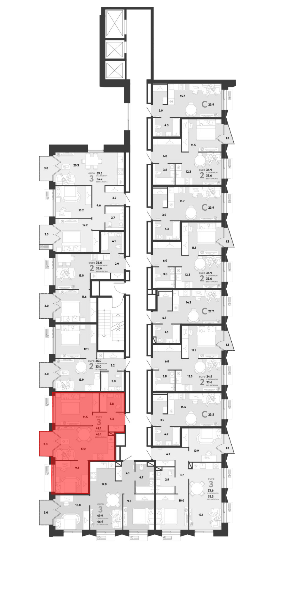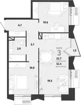 3-к.квартира, 52.4 м², 4 эт. в ЖК Страна.Заречная Корпус Дом Стремление