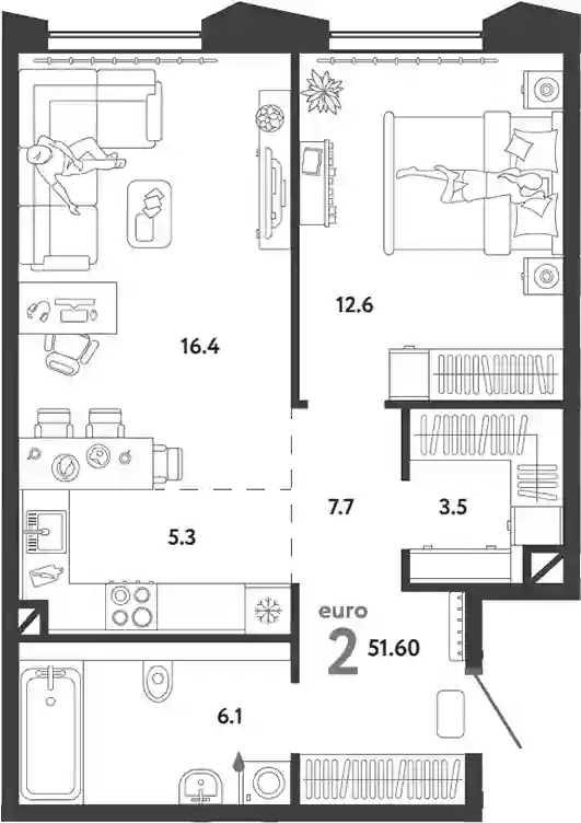 2-к.квартира, 51.6 м², 24 эт. в ЖК Страна.Озерная Корпус Дом Байкал