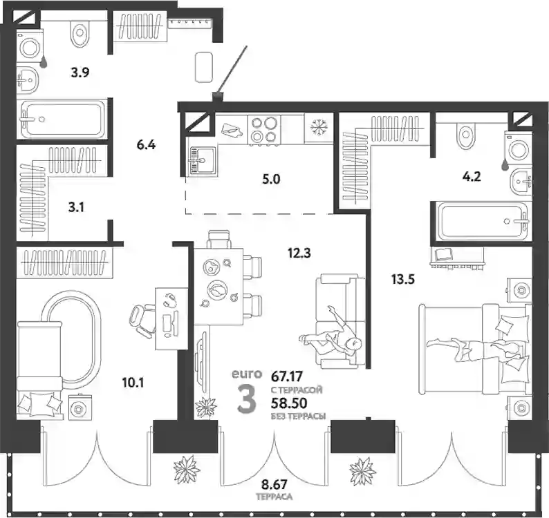 3-к.квартира, 58.5 м², 8 эт. в ЖК Страна.Озерная Корпус Дом Байкал