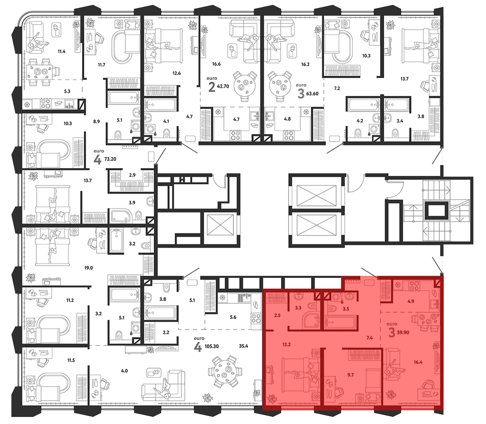 В проекте «Страна.Озерная» предусмотрены редкие форматы квартир: пентхаусы с панорамными видами на парки, с террасами для отдыха или с окном в гардеробной. С помощью системы «умный дом» можно дистанционно управлять бытовой техникой и контролировать бытовые процессы.