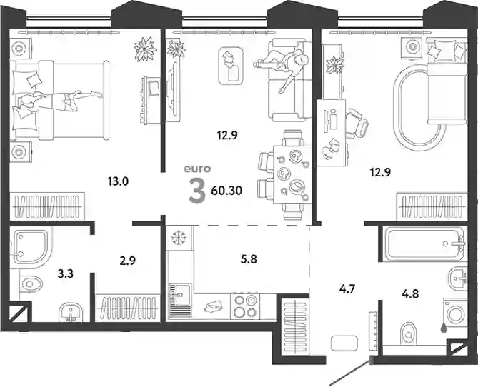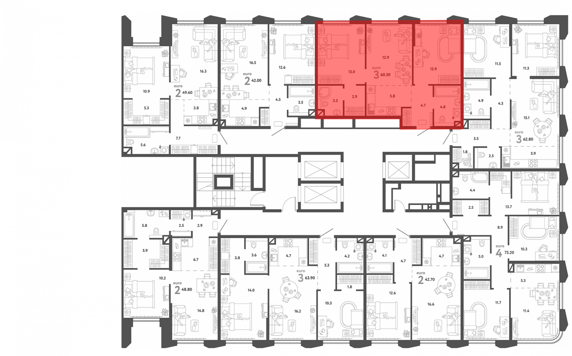 24 452 292 ₽3-к.квартира, 59.8 м², 13 эт.