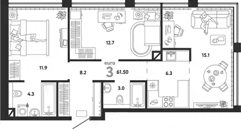 3-к.квартира, 61.5 м², 9 эт. в ЖК Страна.Озерная Корпус Дом Байкал