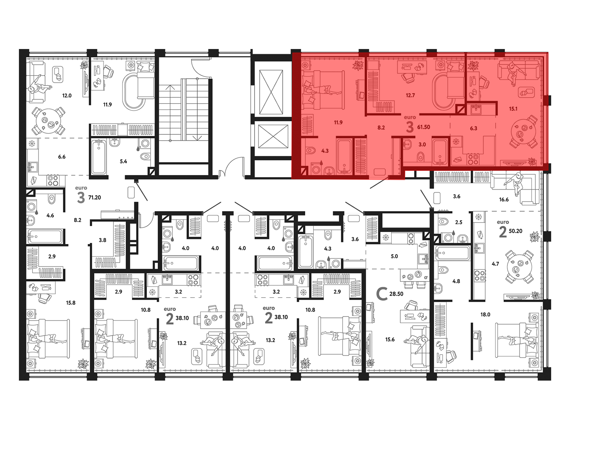 28 842 858 ₽3-к.квартира, 66.4 м², 16 эт.