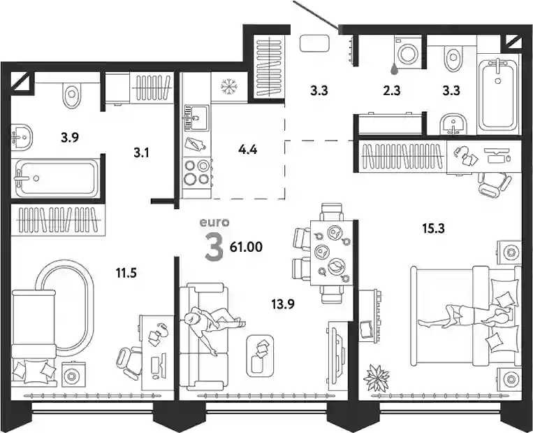 3-к.квартира, 61 м², 28 эт. в ЖК Страна.Озерная Корпус Дом Байкал