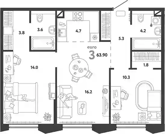 33 583 103 ₽3-к.квартира, 65.6 м², 16 эт.