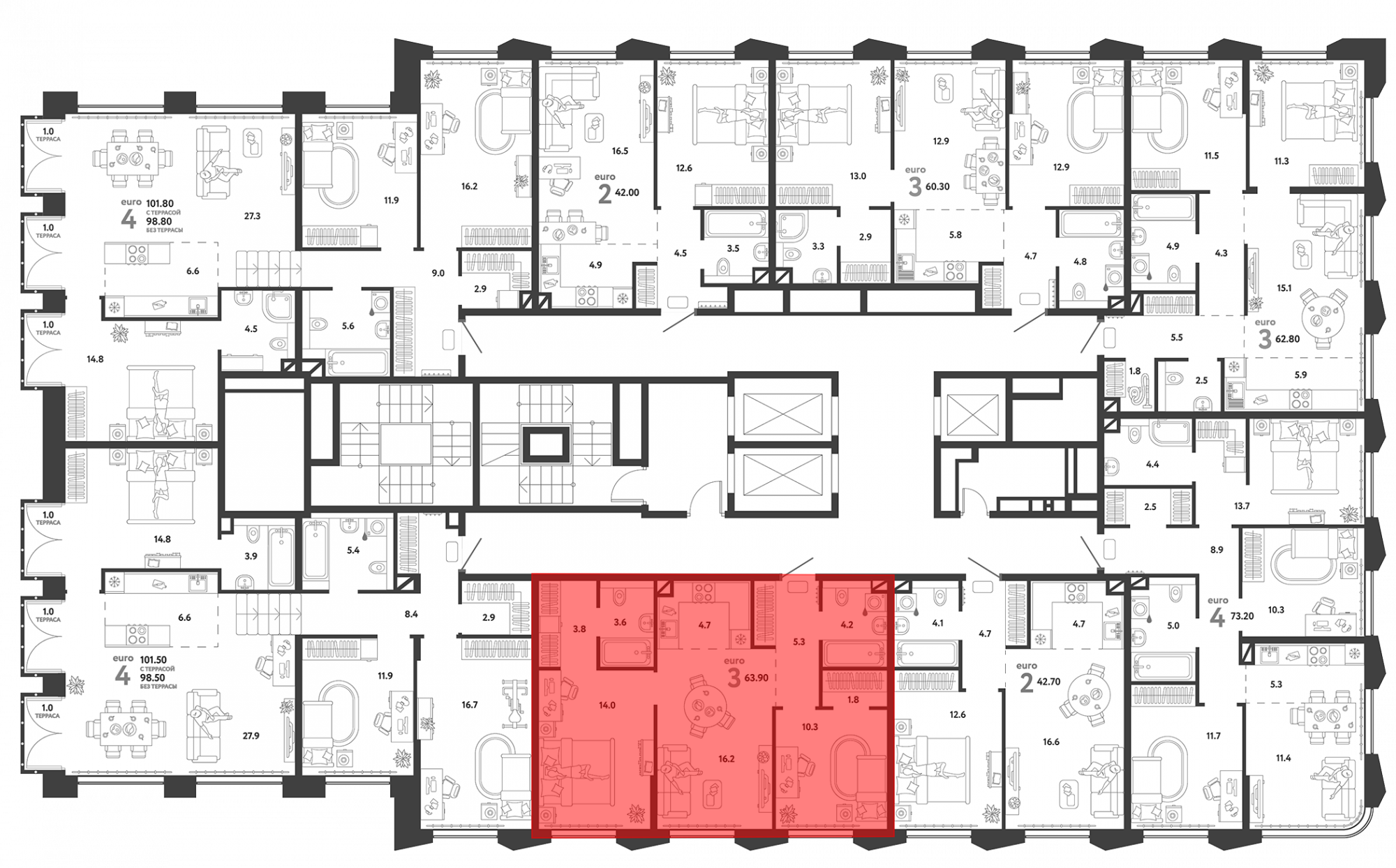28 842 858 ₽3-к.квартира, 66.4 м², 16 эт.