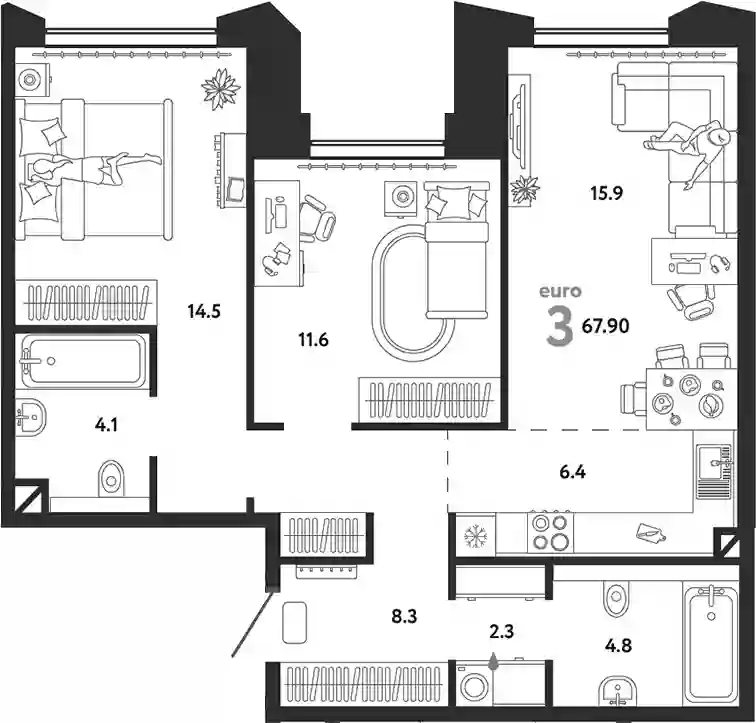 3-к.квартира, 67.9 м², 28 эт. в ЖК Страна.Озерная Корпус Дом Байкал