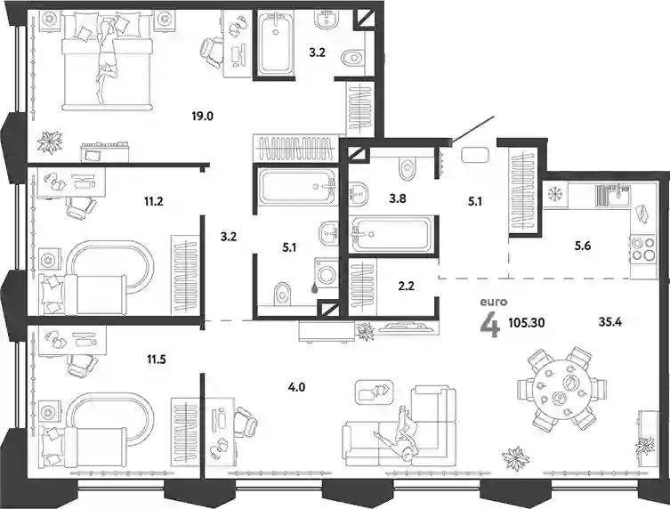 56 228 500 ₽4-к.квартира, 104.5 м², 4 эт.
