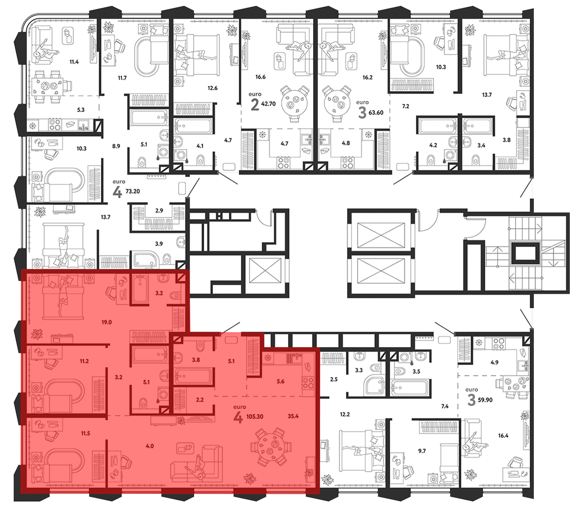 61 869 800 ₽4-к.квартира, 105.2 м², 21 эт.