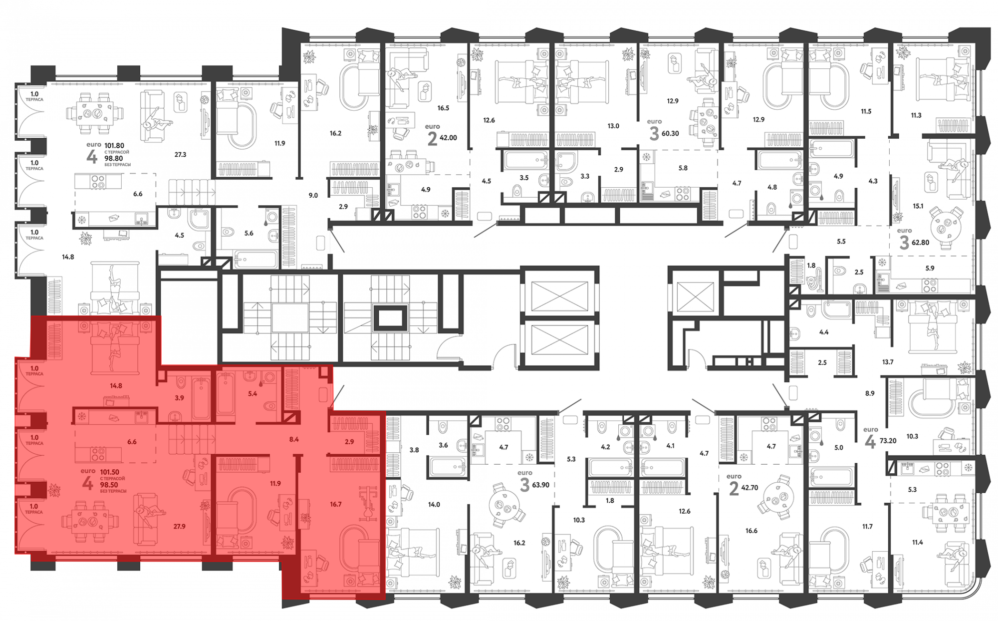 61 869 800 ₽4-к.квартира, 105.2 м², 21 эт.