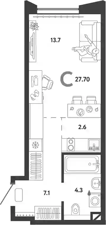 Студия, 27.7 м², 26 эт. в ЖК Страна.Озерная Корпус Дом Байкал