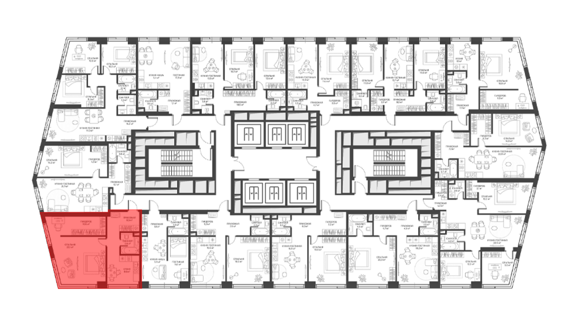В проекте представлены студии и квартиры с 1, 2 и 3 комнатами, в которых предусмотрены потолки от 3 метров и панорамные окна. Помещения идут без внутренней отделки, что дает возможность будущим владельцам самостоятельно организовать пространство. Для удобства жителей установлена система умный дом, которая позволяет через мобильное приложение управлять доступом в квартиру и видеонаблюдением.