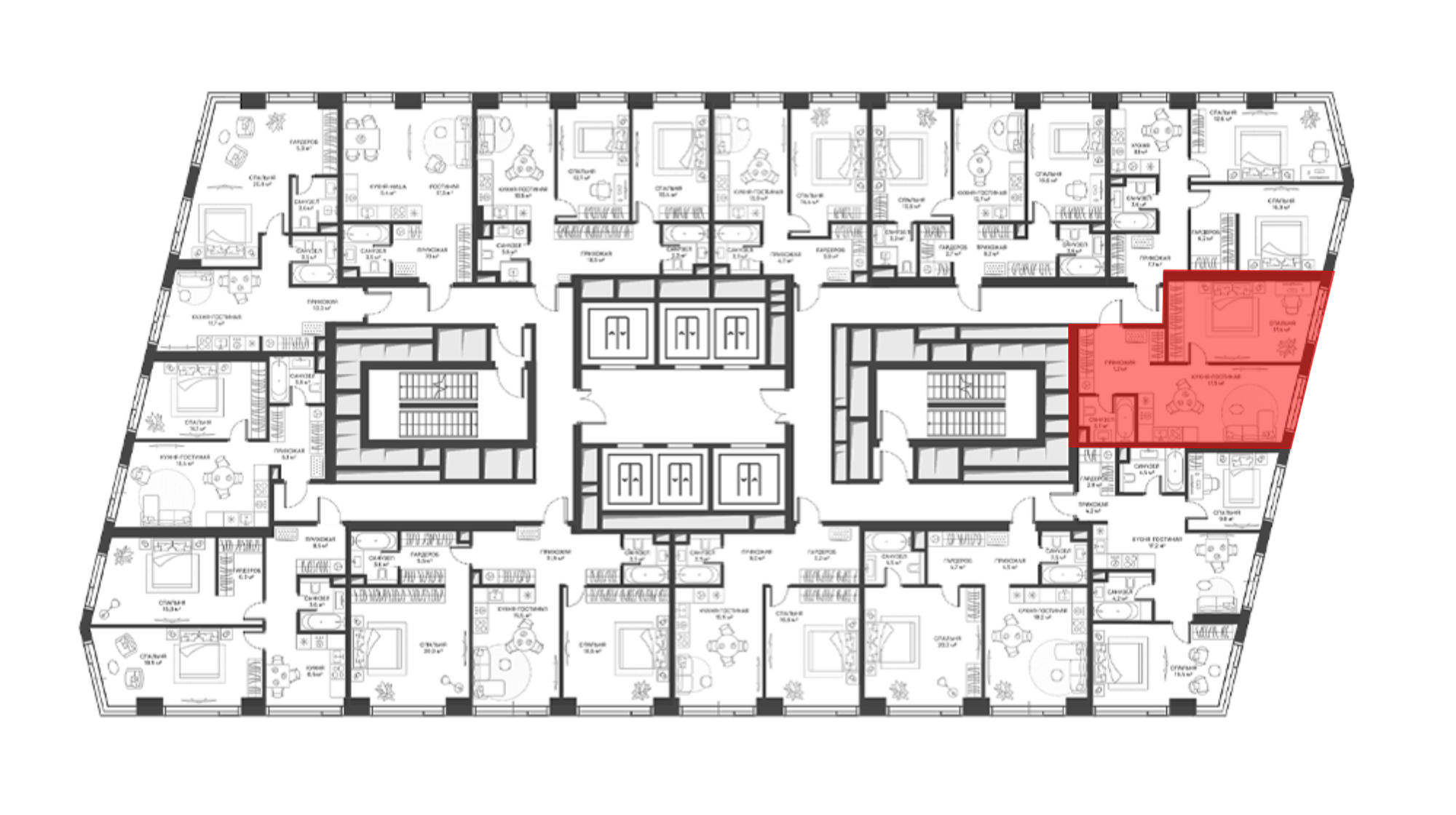 В проекте представлены студии и квартиры с 1, 2 и 3 комнатами, в которых предусмотрены потолки от 3 метров и панорамные окна. Помещения идут без внутренней отделки, что дает возможность будущим владельцам самостоятельно организовать пространство. Для удобства жителей установлена система умный дом, которая позволяет через мобильное приложение управлять доступом в квартиру и видеонаблюдением.